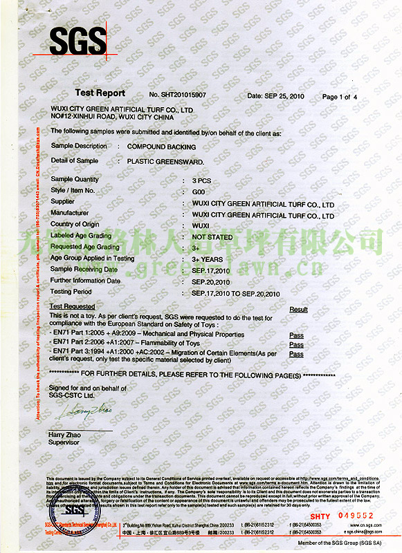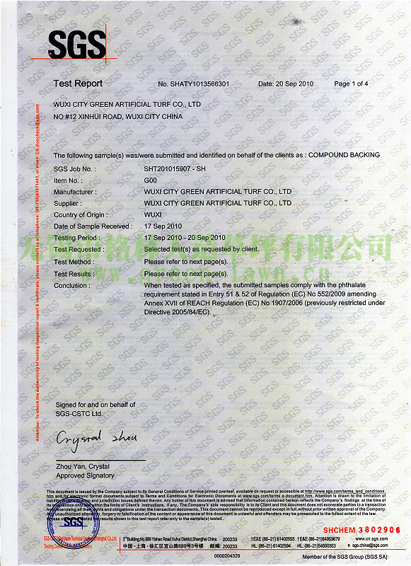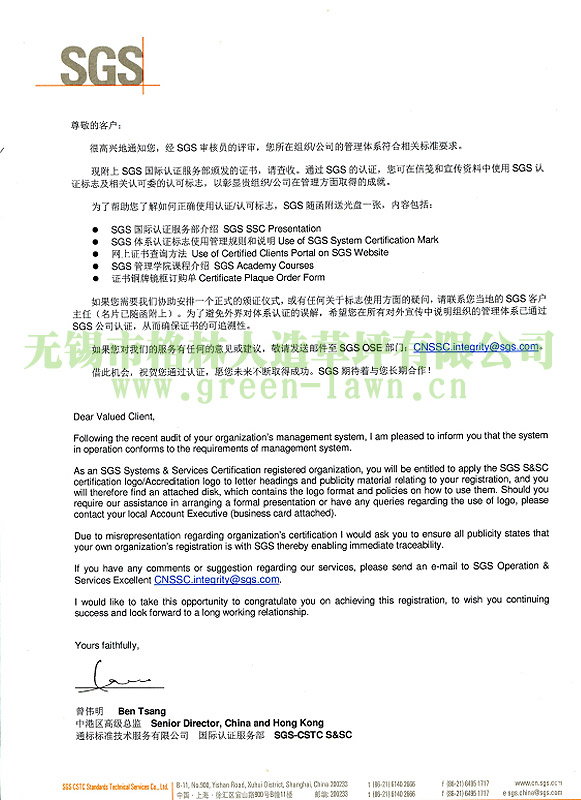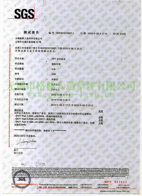 SGS證書(shū)