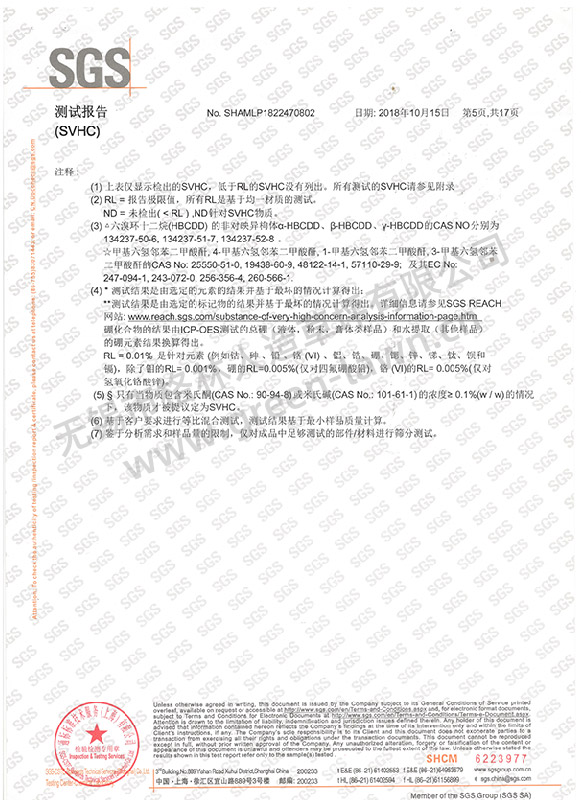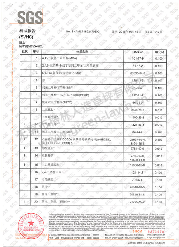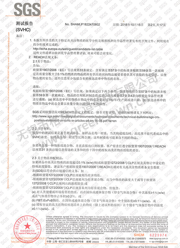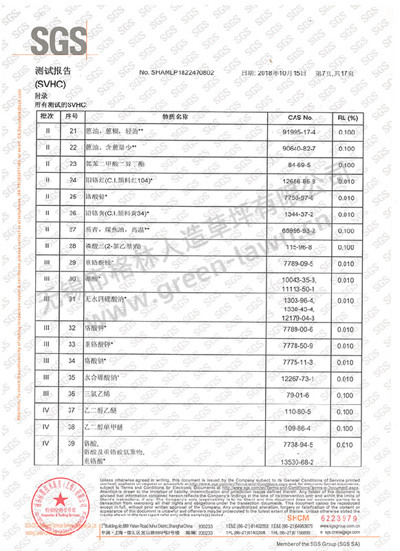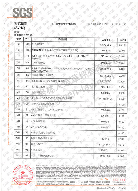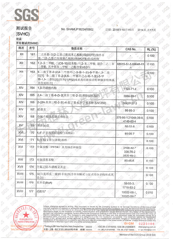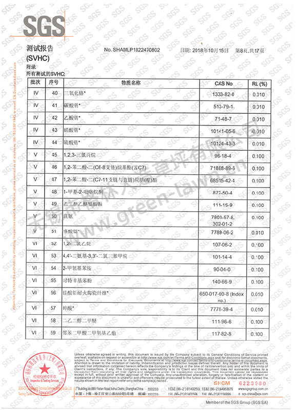 SGS 191項SVHC證書(shū)