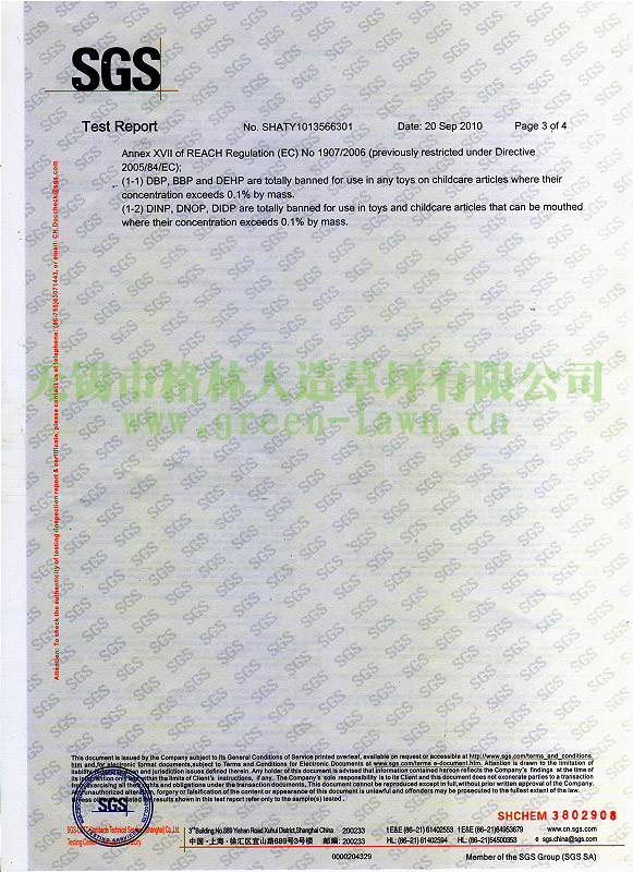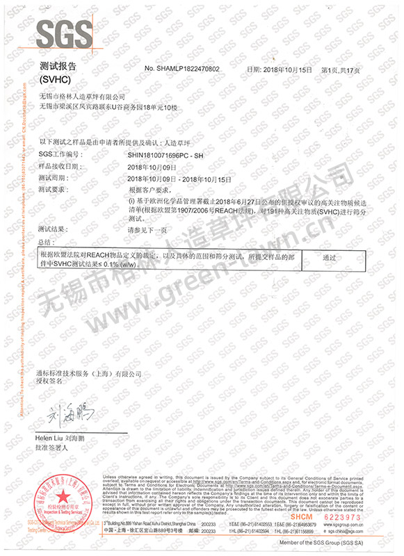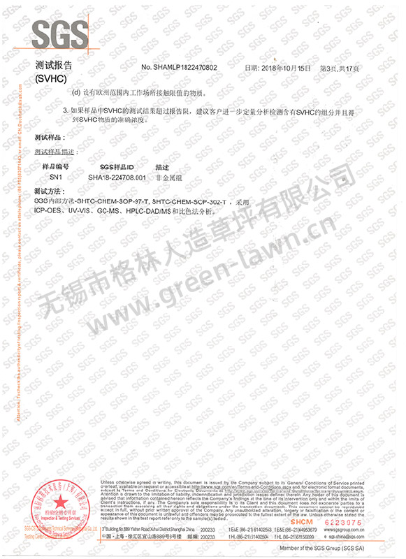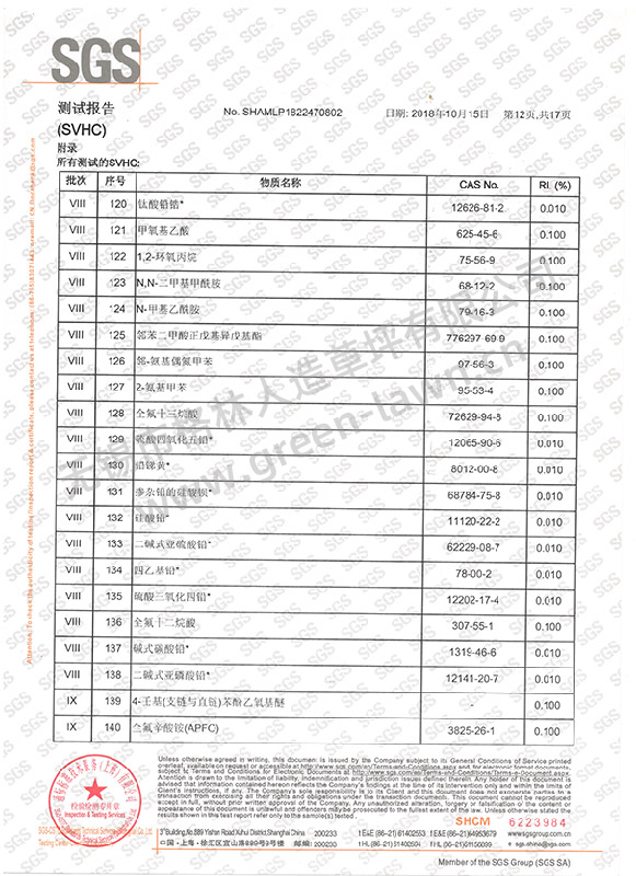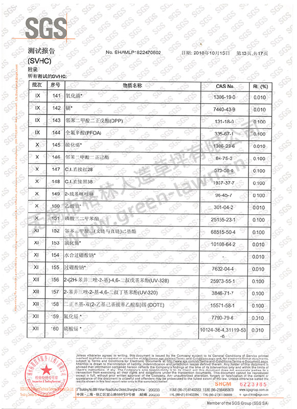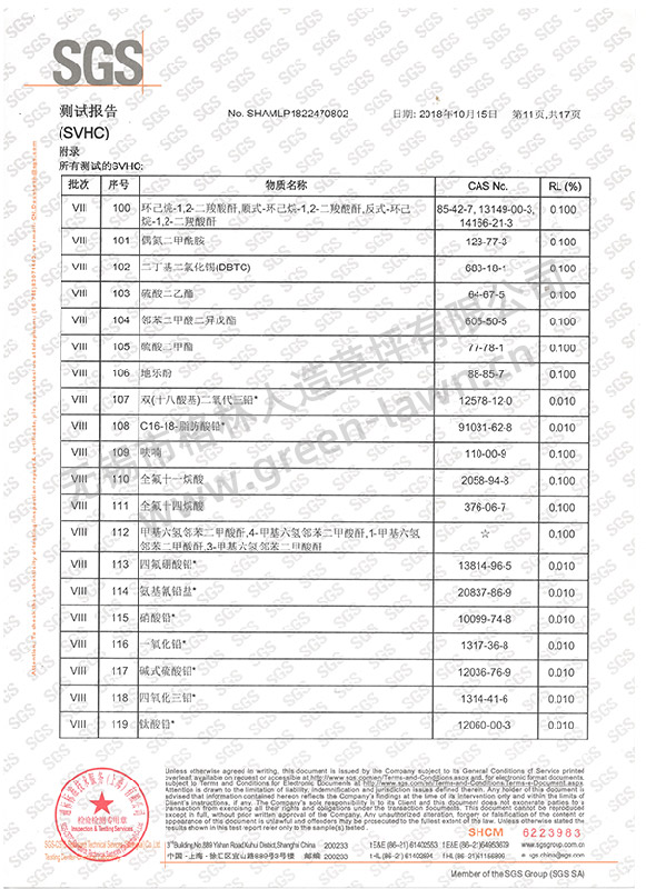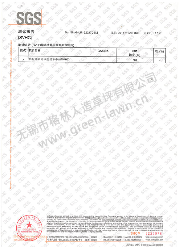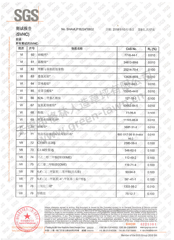 SGS 191項SVHC證書(shū)
