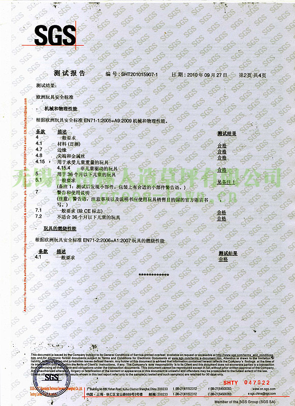 EN71產(chǎn)品證書(shū)中文版